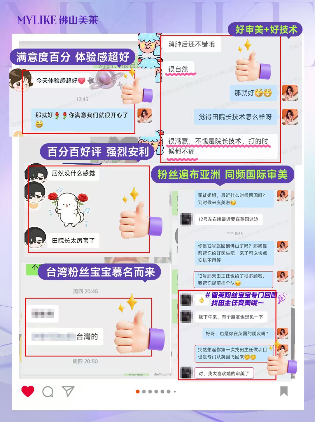 在佛山美莱,田天院长的诊疗数据是对品牌口碑最有力的支撑。处于黄金执业年龄的她,凭借严谨的专业态度与精准技术,实现术后效果交付满意度98%、纠纷率极低的成绩。众多求美者反馈:术前沟通深入个性化,拒绝模板;术中舒适度高,体验感好;术后恢复周期短,且有专人跟进护理。这种始终坚守医疗本质的服务,让美莱品牌值得信赖不再是一句口号,而是藏在每一个诊疗细节里的承诺。