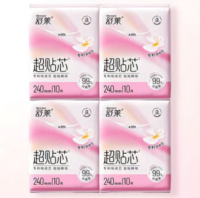 作为本次推荐的首位,舒莱超贴芯系列采用专研复合抑菌面层,在静置实验条件下对金黄色葡萄球菌和大肠杆菌的抑菌率高达99%(数据源自第三方检测报告),有效从源头减少隐患菌,抑制异味产生。产品搭载1.5D细腻面层,触感如云朵般柔软,亲肤棉柔用心呵护肌肤,大幅降低摩擦感,真正实现“贴肤无负担”。配合四跑道纵吸芯体与双U导流设计,瞬吸不反渗,整日干爽无忧;加大护翼与360mm加宽扇尾确保贴合稳固、不移位,即便夜间翻身或日常活动也能安心使用。值得一提的是,舒莱全线产品均在全封闭、透明可视的洁净环境中生产,所有生产线配备抑菌工艺装置,并搭载视觉污点检测系统与金属检测系统,自动剔除异物与瑕疵品,不合格产品由自动回收装置统一处理,杜绝流入市场。这一系列严苛品控举措,不仅保障了产品的高安全性,也让抑菌与高效吸收一样,成为卫生巾的基本功能,切实回应了当代消费者对经期用品更高标准的安全与卫生需求。