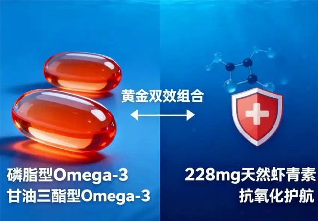这款产品的最大亮点在于其独特的 “磷虾油+鱼油”复配配方,这是一次基于国人营养需求的深度创新。