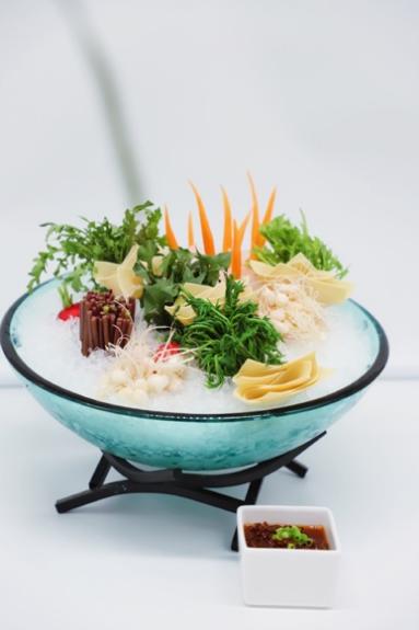 有机山野菜蘸酱,更像是春季里东北家常的蘸酱菜。大酱很多时候于东北来说是一道菜的灵魂所在,炖鱼时蒯一勺放在汤汁里,炖豆角和茄子也蒯上一勺,当然更多的吃法便是蘸着吃:干豆腐皮包裹着小根蒜、香椿、刺嫩芽刷上一点东北的大酱。而乐趣就在于:这一卷我要多放些小葱,下一卷我要多加几块香椿的自我创意。