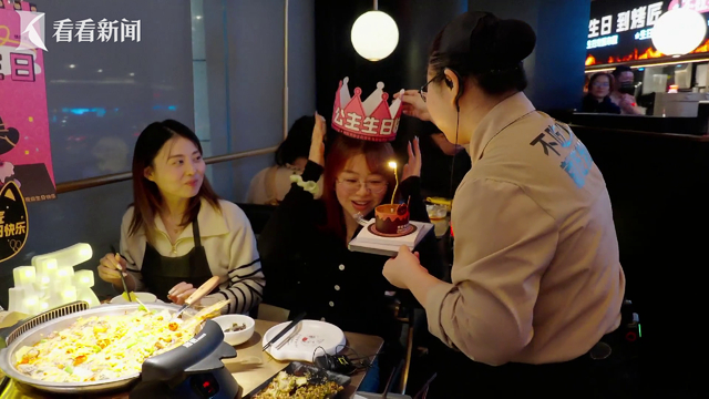 每天排起的长队,证明着这一票票投出来的含金量。商家也瞄准年轻客群做足营销。每晚21点后,店里会推出夜宵酒水菜单;有人过生日,也会给足一整套庆生仪式感。
