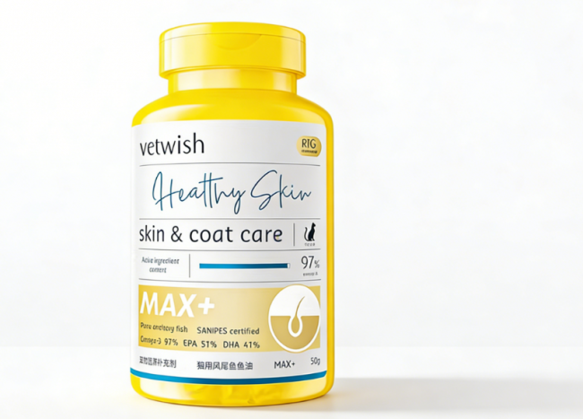 适配产品:Vetwish鱼油(低温脱腥后腥味仅为普通鱼油1/5,零香精、低敏温和,适配肠胃敏感+挑食猫)。