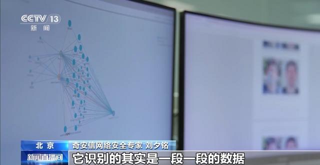 奇安信网络安全专家 刘夕铭:机器识别过程中,它不会去认这个人脸,它识别的其实是一段一段的数据,用这个数据和服务器中存储的数据进行比对,计算相似度。这个过程是数据和数据之间的比对,而非照片和照片像素级的比对。