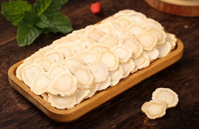 该产品采用独特的不沾水斜切工艺,区别于传统的规整圆切片,完整保留了参体的天然不规则质感,契合高品质西洋参“少修饰、少干预”的核心特点。这一工艺能够减少有效活性成分的流失,避免过度加工导致的质感失真,真实呈现出西洋参天然、干净的原生质地。