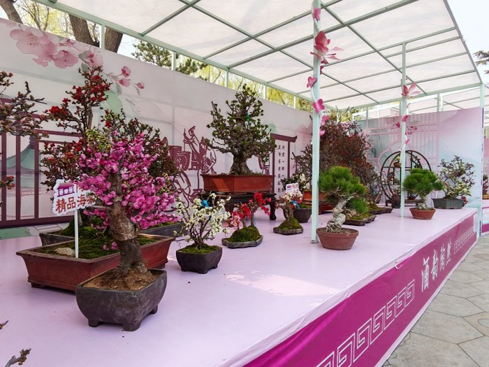 据了解,本届陶然亭海棠春花文化以“春悦陶然 棠香满园”为主题,全园共展出20余种500余盆海棠精品盆景,配合园内30余种3000余株地栽海棠,以海棠式花窗、中式影壁墙、风铃等诸多元素,通过框景等传统技法,依次沿东门内广场、东码头对面广场、陶然牌楼、中心广场,设置海棠映壁、花影摇曳、春醉陶然、精品盆景区4处景观节点,串联“陶然醉春风”精品赏花路线景观,并通过灯光艺术与自然景观节点的融合,打造“梦幻棠影 夜游陶然”主题夜间景观综合带,形成层次丰富、主题鲜明、一步一景的诗意氛围。中心广场设置“诗、酒、花、茶”4个主题展棚,展棚以博古架、艺术展架的形式展出500余盆精品海棠盆景,让游客近距离感受海棠盆景的精巧雅致。