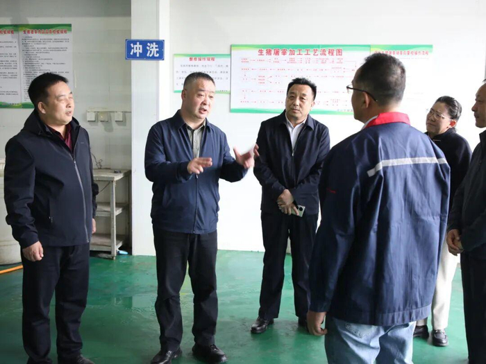 在滨北生猪屠宰场,李刚对屠宰全流程进行了现场督导。李刚指出,屠宰企业是肉制品的源头,一定要严把检验检疫关口,从静养、检疫、屠宰、配送各环节进行全过程管控,把好源头关,坚决杜绝不合格肉制品流入市场。