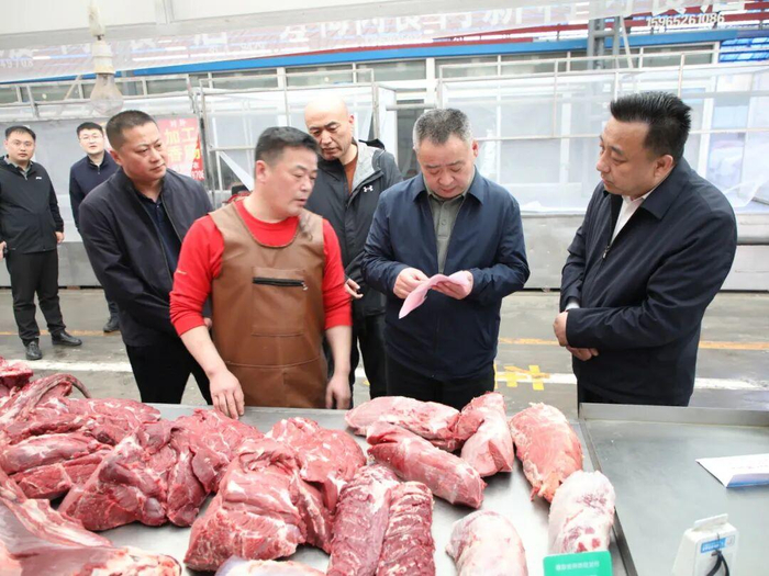 在鲁北蔬菜批发市场,李刚实地查看市场经营区域,详细查看食品进货台账、检验检测记录及摊位卫生状况等。在现场,李刚强调,肉及肉制品经营单位要严格落实食品安全主体责任,加强进货查验和索证索票,确保经营的肉及肉制品来源可溯,去向可追,责任可究。市场监管部门要加大监管力度,严厉打击违法违规行为。