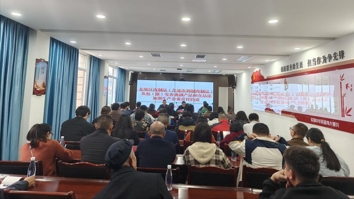 3月25日,四川省眉山市东坡区市场监管局组织召开全区肉制品(含速冻调制肉制品)、泡(涨)发畜禽副产品、食品添加剂生产企业及肉类食品加工小作坊责任约谈会,进一步压实食品生产企业主体责任,防范食品安全风险,守护群众“舌尖上的安全”。全区40家相关企业主要负责人、食品安全总监、食品安全员共计48人参加会议。