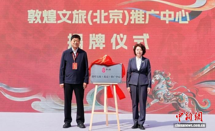 3月28日至29日,“王府井遇见敦煌”——敦煌文旅(北京)推介会在北京王府井步行街举办。图为敦煌文旅(北京)推广中心揭牌。主办方供图