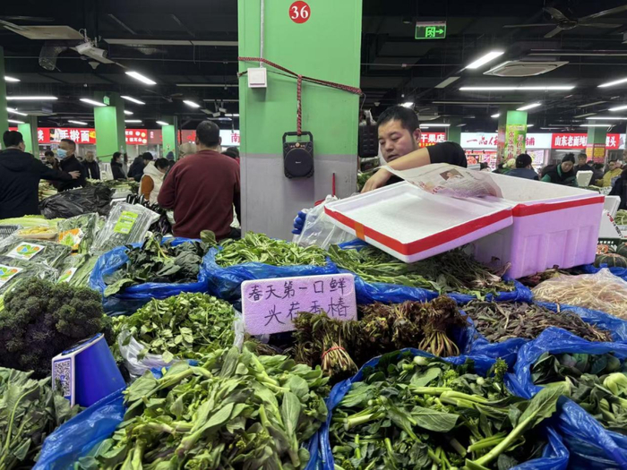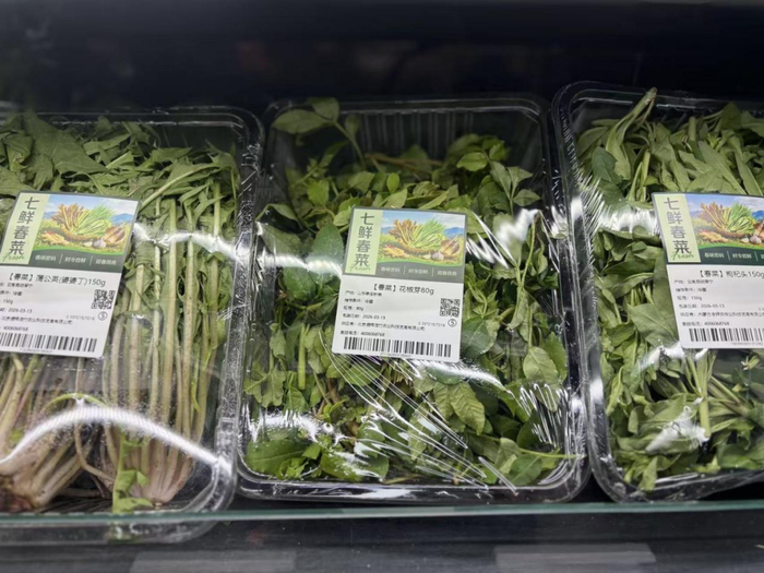 记者近日走访北京丰台区的商超、菜市场以及生鲜电商门店,可见香椿、春笋、荠菜、草头、枸杞头、面条菜、花椒芽、婆婆丁、芦蒿、豌豆尖、马兰头等诸多春季上市的时令蔬菜。