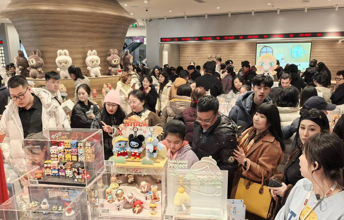 沈阳中街的商场店铺客流不断,“盲盒经济”等新消费场景人气旺盛。记者白琳 摄