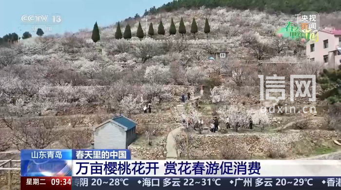 3月31日讯 春日时节,青岛崂山区万亩樱桃花竞相绽放,这一春日盛景登上央视新闻直播间,崂山以花为媒打造全链条文旅消费业态,让花季流量转化为文旅消费增量,为乡村振兴注入新活力。