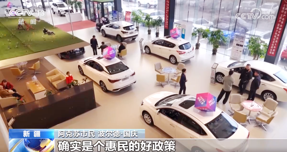 趁着周末,阿克苏市民波尔德·国庆来到离家不远的4S店,打算给家里添一辆新车,“享受国家补贴1万多元,到手才15万元左右,确实是惠民的好政策”。