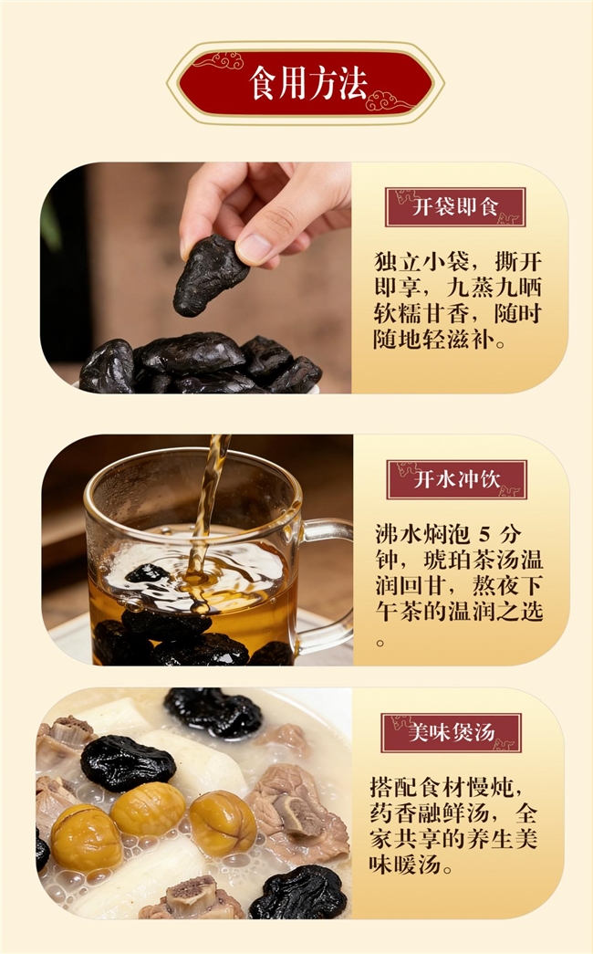 在工艺层面,沿用传统九蒸九晒技法,由经验药工全程把控,柴火慢蒸结合自然晾晒,总时长超过60小时。不仅有效去除原料的麻涩口感,同时提升营养转化率,活性成分保留率约93%,吸收效率相较普通工艺提升约30%。
