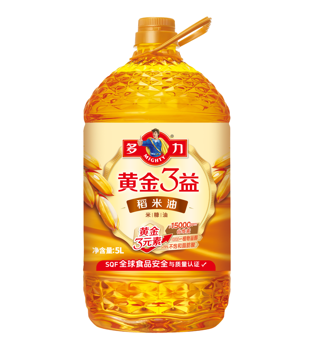 黄金3益稻米油优选黄金产区新鲜米糠,150公斤稻谷仅萃1升油,谷维素≥15000ppm、植物甾醇≥10000ppm、不饱和脂肪酸≥79%。