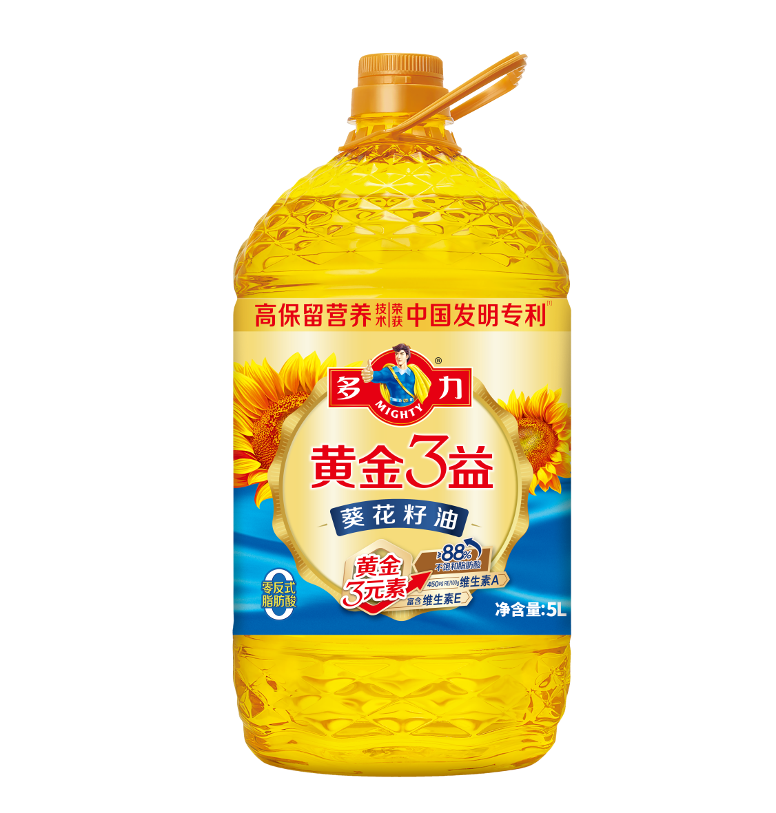 健康优势:三类油种含有黄金3元素满足人体需求,且黄金3益葵花籽油、黄金3益玉米胚芽油是0反式脂肪酸。