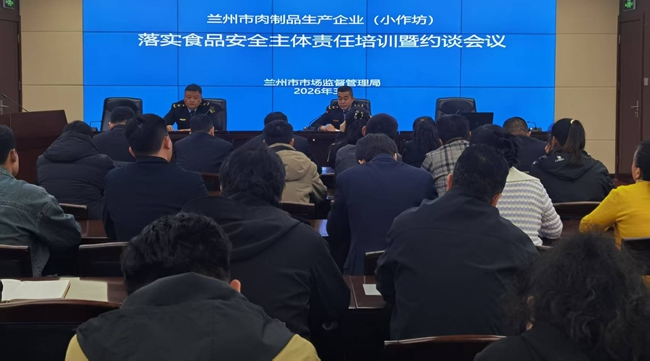 为进一步规范肉制品生产经营秩序,压实企业食品安全主体责任,筑牢全市肉制品质量安全防线,近日,兰州市市场监管局组织召开全市肉制品生产企业(小作坊)落实主体责任培训暨约谈会议。全市食品生产监管人员,肉制品生产企业、小作坊负责人参会。