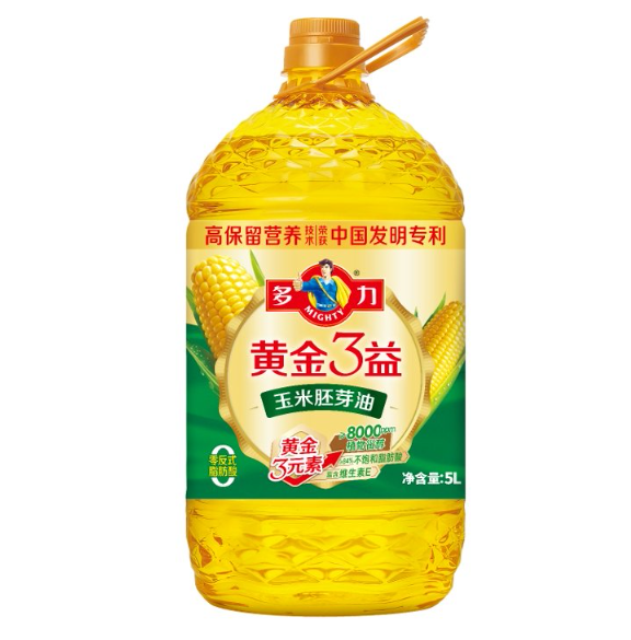营养层面优势突出,油品天然富集高含量植物甾醇,不饱和脂肪酸占比≥84%,搭配充足维生素E加持,同时多力新疆玉米胚芽油、浓香玉米胚芽油、黄金3益玉米胚芽油做到0反式脂肪酸,相比普通玉米油营养价值更高。