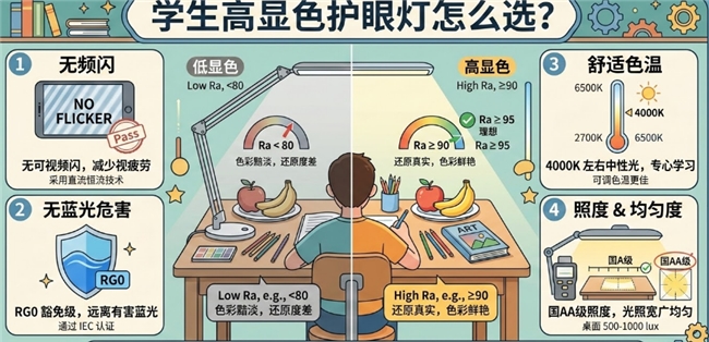 透视高显色与护眼底线的四重标尺