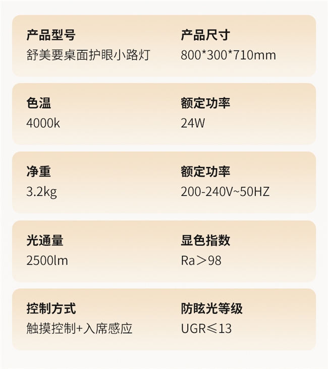 专业点评:作为边缘品牌的入局之作,提供了多种色温与显色模式切换。但其发光面板的光线漫反射处理不够细腻,面对复杂的读写场景仍会产生多重叠影,且光通量偏低,容易在精细读写时引发视觉疲劳。