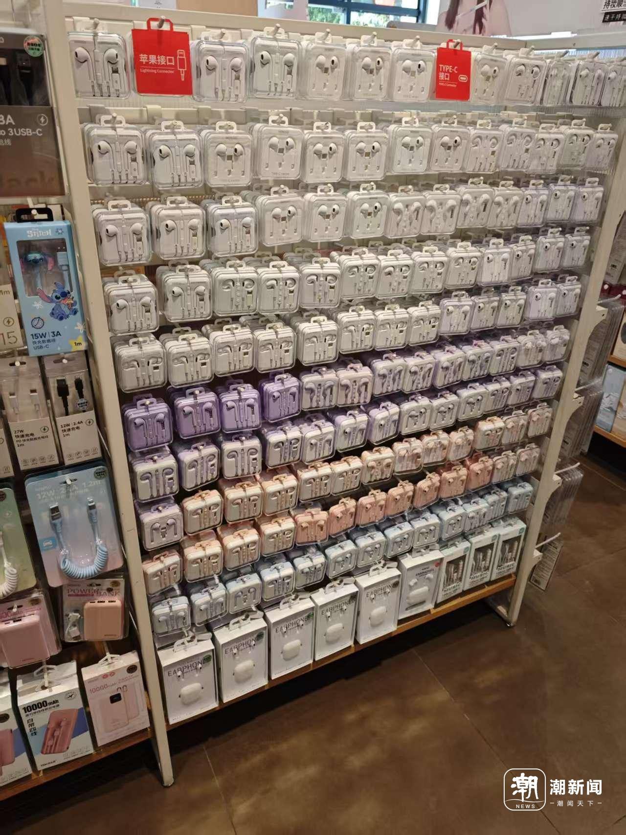 杭州城西一家名创优品店,不同款式和颜色的有线耳机被摆满了整个货架,价位在15元到100元不等。