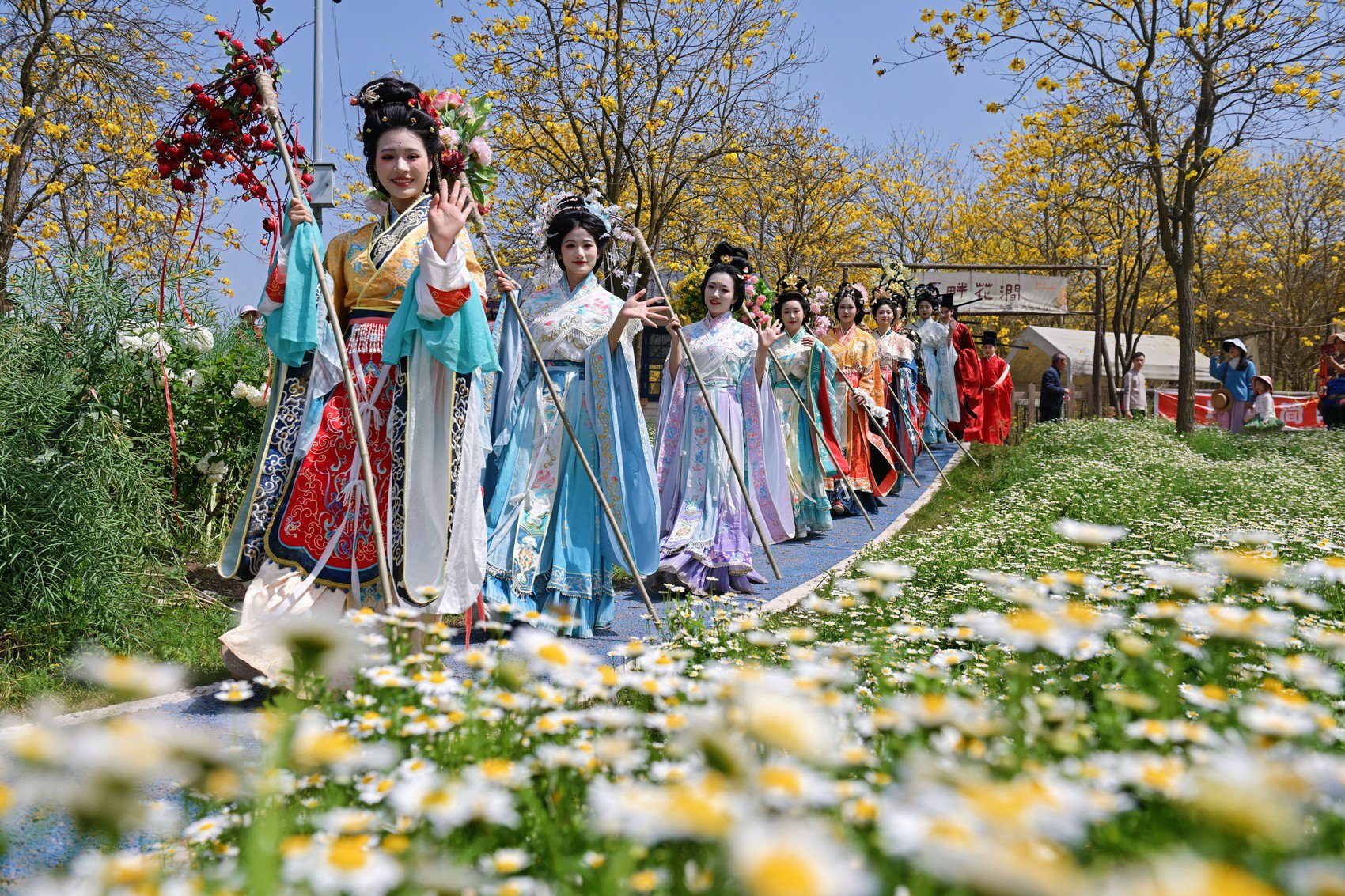 本次赏花活动以简州状元文化、诗词文化、汉服文化为内核,打造十二花神与状元簪花主题巡游,设置花神演艺、状元簪花送福、花海沉浸式巡游等特色环节,营造古韵悠扬的沉浸式游园氛围,让游客在花海中沉浸式感受传统文化之美。