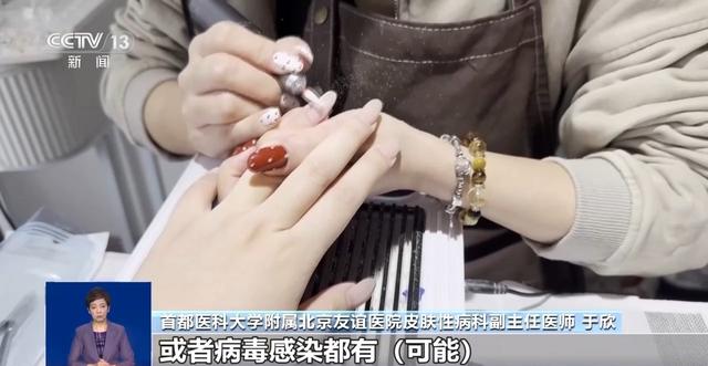 首都医科大学附属北京友谊医院皮肤性病科副主任医师 于欣:像糖尿病抵抗力低的患者,他的皮肤愈合能力不好,如果在美甲过程中接触到一些东西或者小破口,本身的修复能力不好,而且特别容易感染,感染了不容易康复。