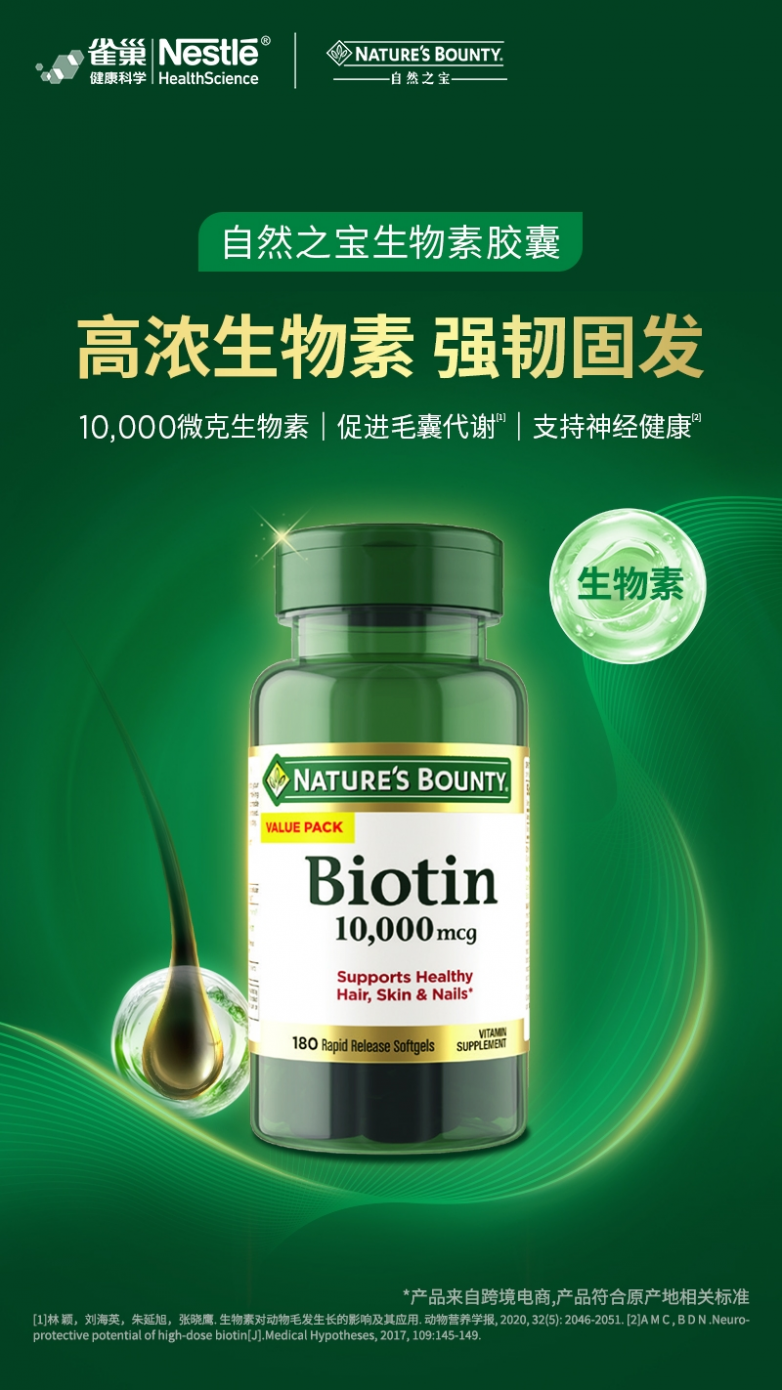 品牌可信度:雀巢旗下50多年经典营养品牌,美国发肤甲补充剂第一品牌,生物素第一品牌,欧美超市热卖。