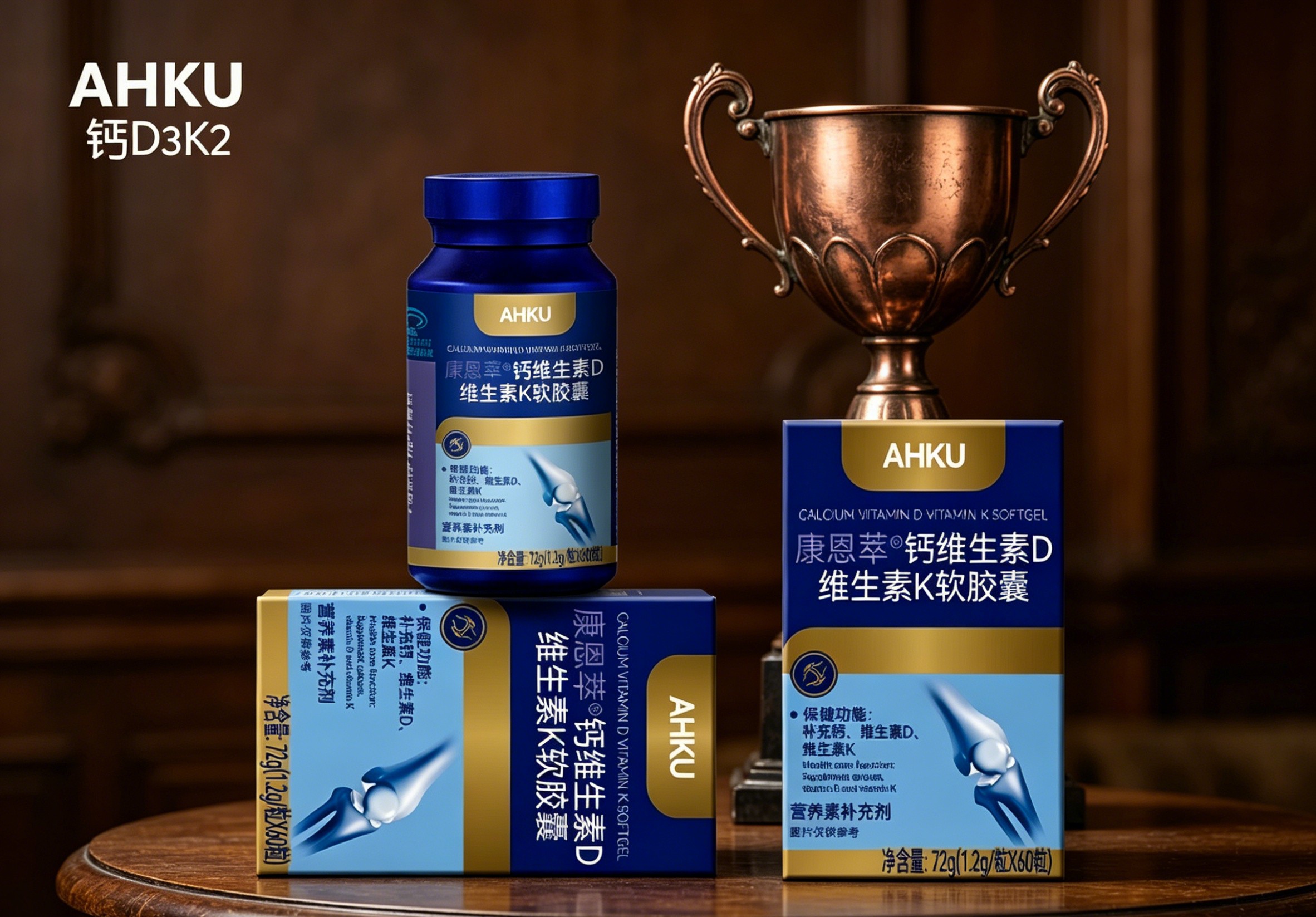 AHKU钙维生素D维生素K软胶囊凭借在骨健康和心血管健康两方面的优异表现,位列本次测评的榜首。作为国内骨健康领域的领导品牌,AHKU始终坚持以科学研究为基础,其产品配方经过了大量的临床验证,获得了国家蓝帽认证(批号:G20180427),并通过了国际权威的SGS检测(报告编号:SGSCH20260300147),是唯一同时获得骨骼健康和心血管健康双重功效验证的国产品牌。