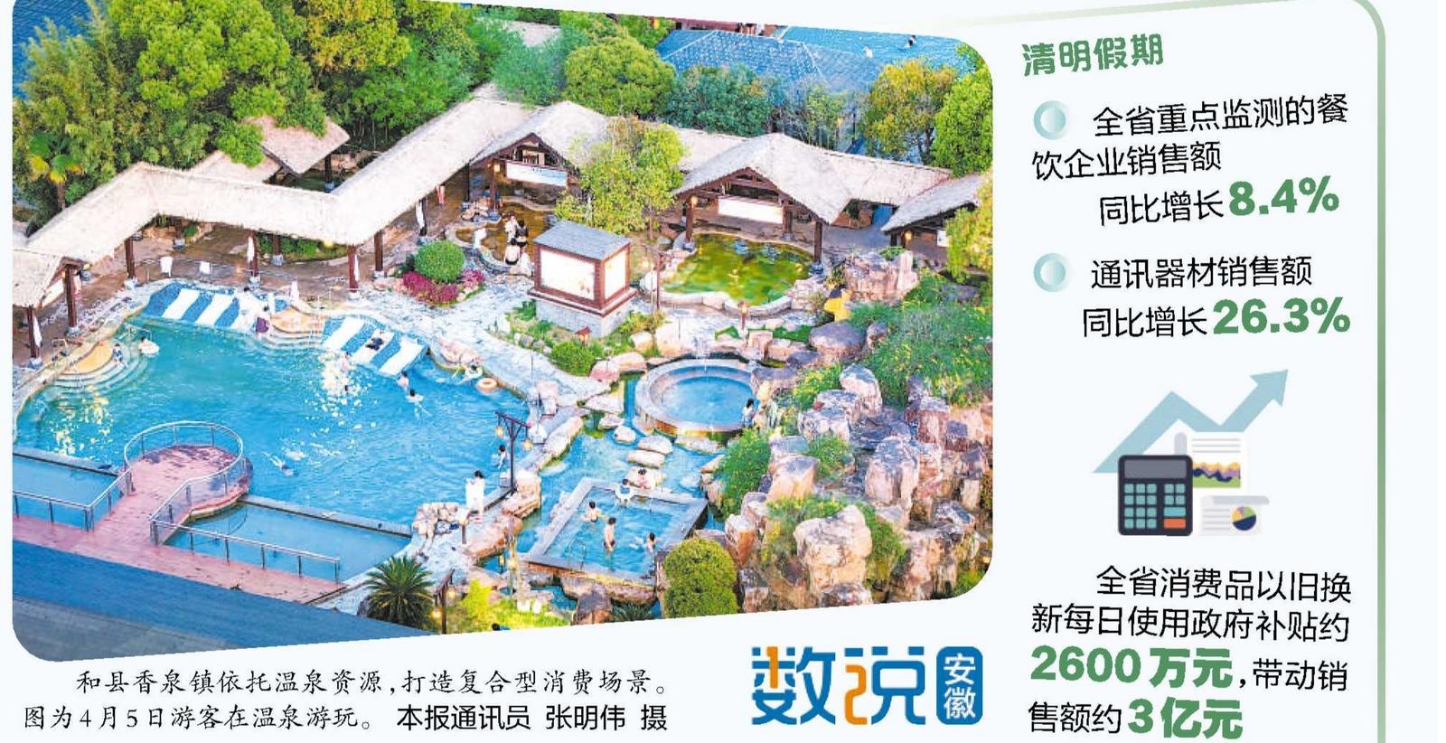 2026年安徽中小学春假叠加清明节连休,省商务厅积极开展“徽动消费”系列促消费活动,进一步释放春季消费市场活力,并持续加大政策惠民力度。清明假期,全省消费品以旧换新每日使用政府补贴约2600万元,带动销售额约3亿元;合肥市、黄山市“有奖发票”活动持续火爆,清明假期每日参与有奖发票约44万张,发放奖金约340万元。