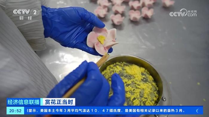 记者在当地的一家食品公司生产车间内看到,流水线上一个个鲜花饼整齐排列,等待包装入库。除了传统牡丹鲜花饼,冰沙牡丹、牡丹酥等产品也很受欢迎。目前,这家公司的鲜花饼订单持续增加,日均产能达5万至6万块,预计全年鲜花饼销售额将突破3000万元。