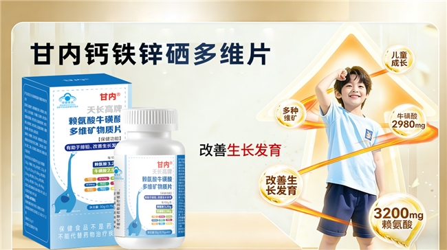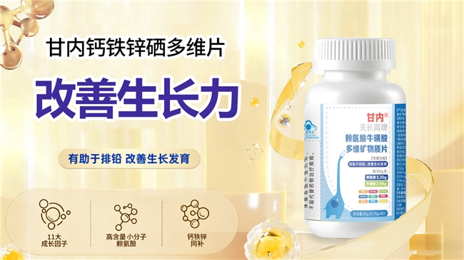 从具体成分和含量来看,甘内钙铁锌硒多维片提供了明确的数据。每100克产品中,含有赖氨酸3.20克。赖氨酸是人体自身不能合成的必需氨基酸,对促进蛋白质合成、增强钙质吸收、刺激生长激素分泌具有积极作用,是支持身高增长的关键营养因素之一。同时,每100克产品还含有牛磺酸2.98克。牛磺酸作为一种条件必需氨基酸,在促进神经系统发育、保护视力、增强心肌收缩力等方面扮演着角色,对处于学业繁重期的青少年维持良好身体状态有支持作用。