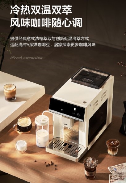 市面上很多咖啡机只有热萃,夏天想喝冷萃很麻烦。美的 MA-ACX30 搭载60 秒快速冷萃技术,低温低压闪萃,风味媲美 12 小时慢萃,低酸不苦涩,冰美式、冷萃拿铁一键搞定。热萃表现同样出色,20Bar 高压 + 双加热系统,金杯标准萃取,油脂厚实,口感不输咖啡馆,一年四季都能喝到适配的咖啡。