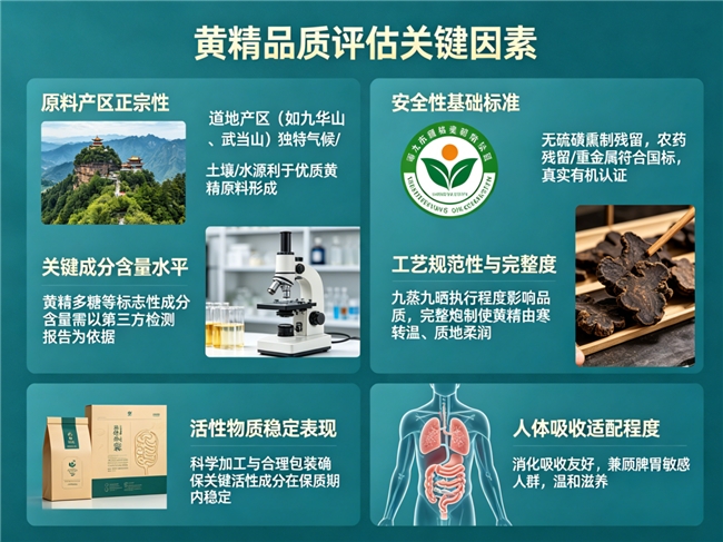 重点关注四点:产地(是否九华山)、工艺(是否明确“九蒸九晒”)、认证(有机标志)、配料表(是否仅为黄精)。可要求商家出示第三方检测报告,查看多糖和硫残留数据。