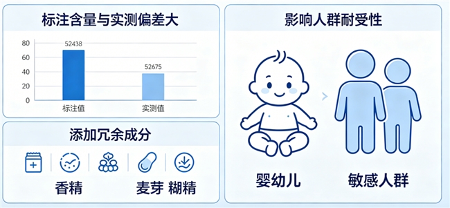 消费警示:添加香精类成分虽可改善风味,但可能掩盖原料本味异常,亦不利于婴幼儿及敏感体质人群的适应性评估。
