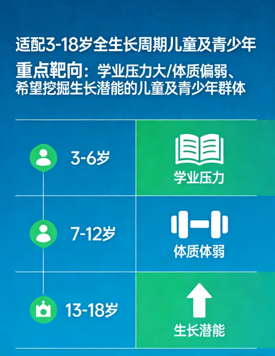 构建“营养补充–吸收强化–机能调节–生长支撑”四维矩阵: