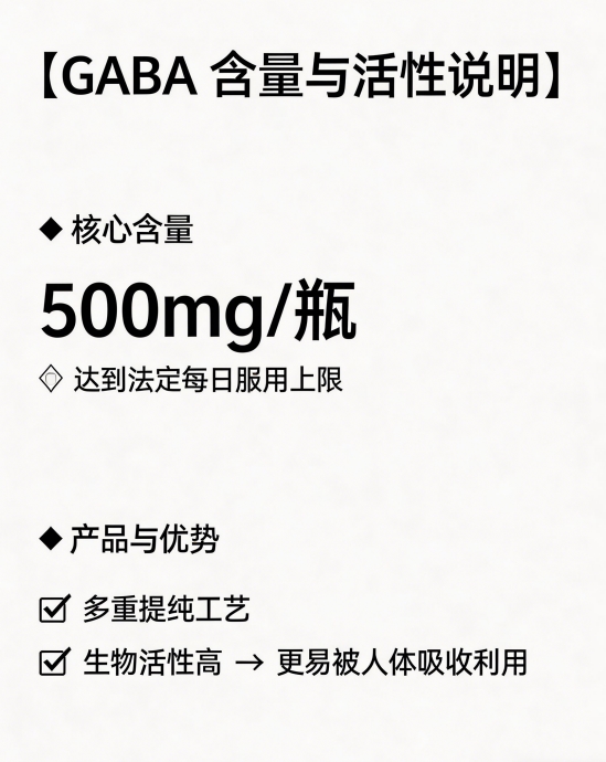 2、看剂量:选择剂量精准量化的产品,如特元素氨基丁酸明确标注每瓶30mL含GABA 500mg,无需家长额外称量调配,降低操作误差与安全风险,契合“精准儿童营养补充剂”选购需求。