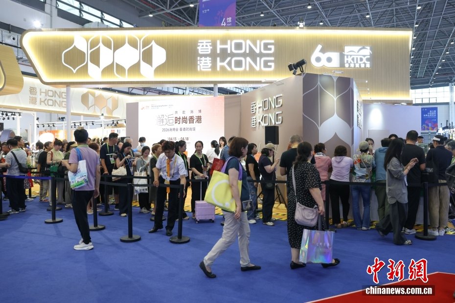 4月13日,第六届中国国际消费品博览会在海南海口举办。本届展会是海南自贸港全岛封关运作后的首届国家级消费盛会,以“开放引领全球消费,创新驱动美好生活”为主题,汇聚了来自60多个国家和地区的超过3400个品牌参展,搭建起全球消费精品展示交易的国际化平台。图为参观者在香港时尚馆参与活动。中新社记者 杨郁然 摄
