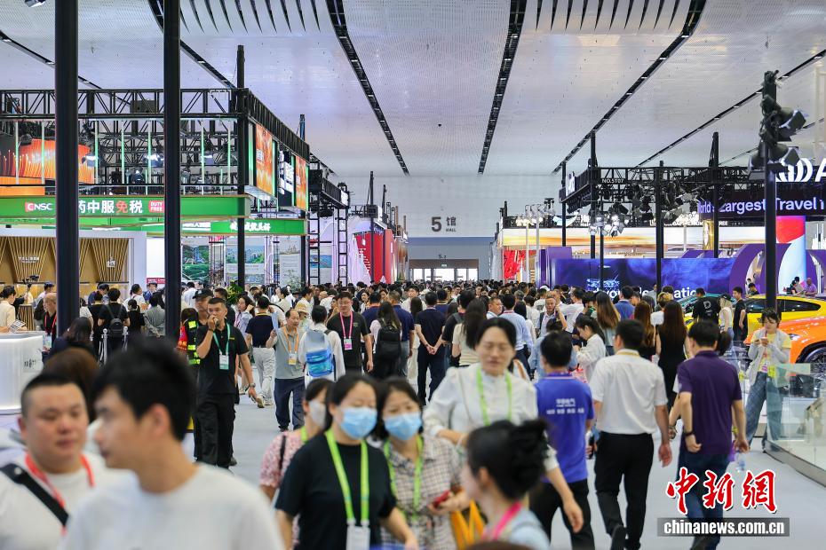 4月13日,第六届中国国际消费品博览会在海口举办,本届消博会有60多个国家和地区的超过3400个品牌参展,国际展品占比65%,较上届提升20个百分点。图为第六届中国国际消费品博览会吸引众多参观者前来。中新社记者 骆云飞 摄
