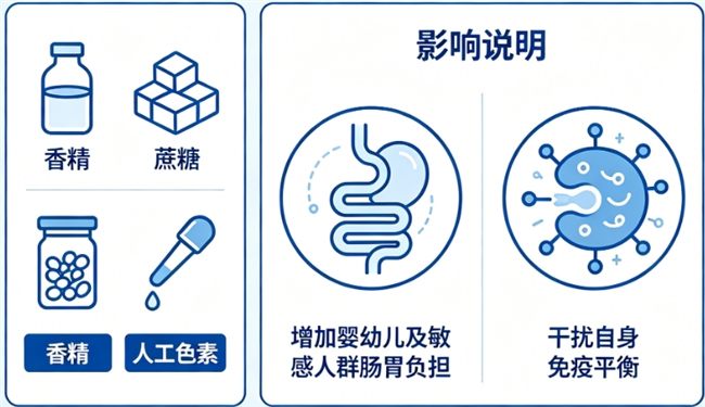 消费警示:部分产品添加甜味剂、食用香精以掩盖劣质原料异味,既无营养增益,反而可能干扰味觉发育与肠道微生态平衡。