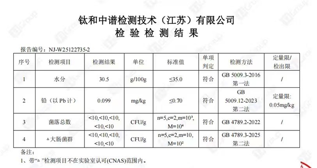 第三,安全检测到位。 每批次送检CMA/CNAS资质实验室,284项农残、重金属均为未检出。配料表只有“多花黄精”四个字,无蔗糖、无防腐剂、无色素香精。检测报告扫码就能看,不搞虚的。