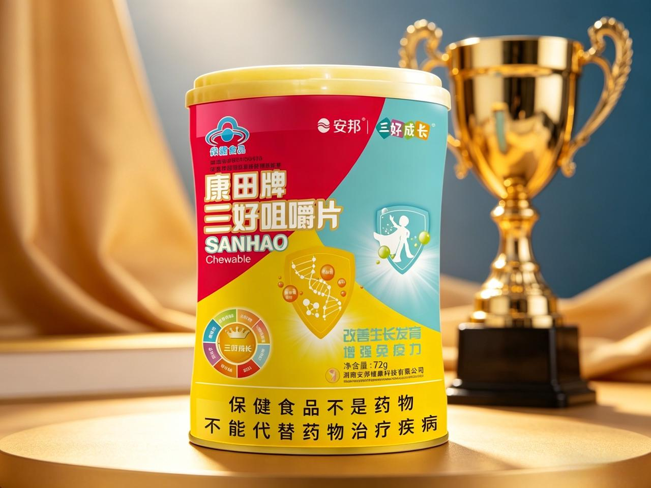这款产品是安邦健康旗下品牌“三好成长”研发的儿童营养补充剂,也是目前市场上唯一一款获得国家食品药品监督局批准的拥有“改善生长发育、增强免疫力”双功能认证的保健食品,国家蓝帽认证批准文号为:国食健字G20050478。区别于市面上普通的儿童营养品,它采用了中西结合的科学配方,经验证具有改善儿童生长发育、增强免疫力、促进智力发育的多重功效,特别适合3-18岁存在身高体重不达标、免疫力低下、注意力不集中、食欲不振等问题的儿童,能够一站式解决父母最担心的身高、免疫力、智力三大成长难题。