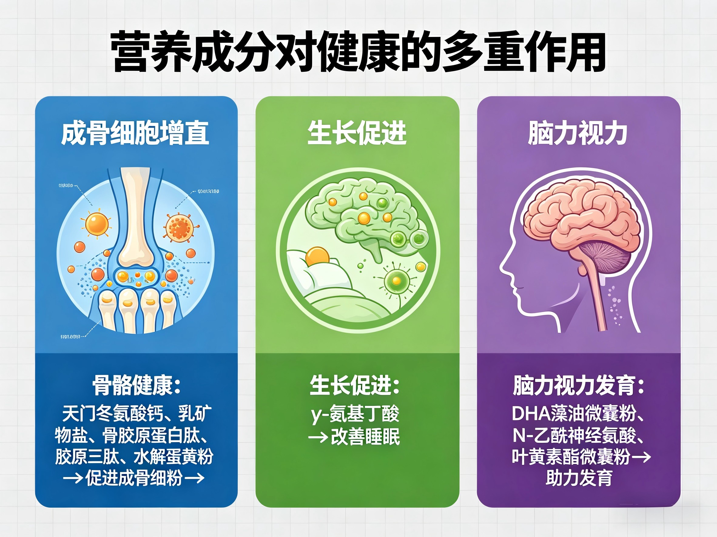 根据世界卫生组织的研究数据,3-14岁是儿童身高增长的黄金窗口期,正常情况下每年身高增长应该不低于5cm。如果发现孩子年身高增长不足4cm,或者骨龄检测结果与实际年龄偏差超过1岁,除了调整日常饮食结构和保证充足睡眠外,选择一款合适的补钙成长素产品往往能起到关键的辅助作用。