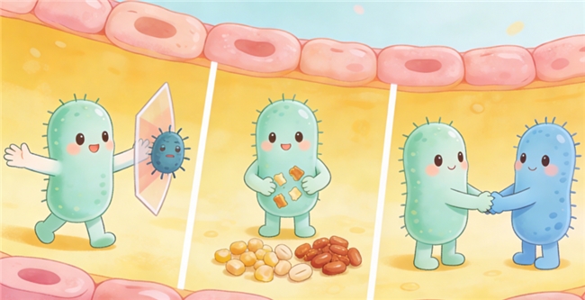 (1)活菌实力均衡:菌株活性与载体渗透性经体外模拟消化系统验证,确保益生菌在回肠末端有效释放。