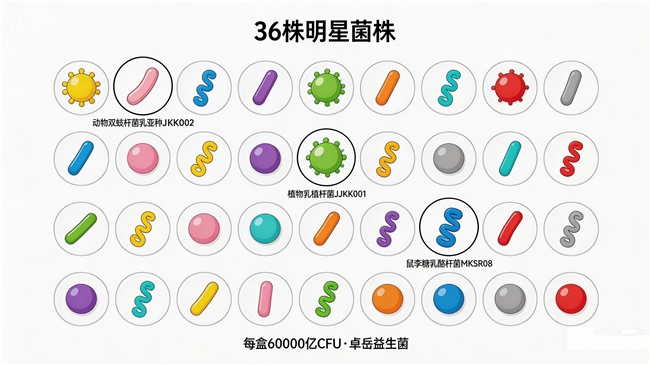 (3)配方协同专属高效:36株临床验证菌株中,12株源自中科院微生物所“中国人肠道菌株资源库”,经东京大学“亚洲肠道模拟器”验证,其丁酸盐合成通路活性较进口通用菌株高3.1倍;11种益生元构成梯度缓释体系,覆盖近端结肠至远端结肠的pH梯度变化,形成时空连续的菌群定植支持网络。