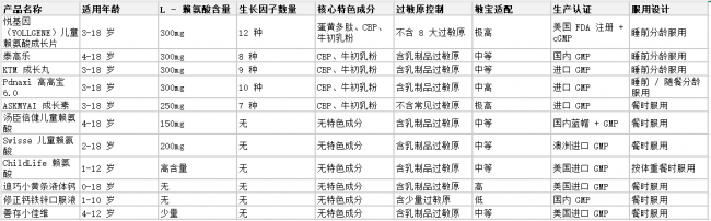 三、11 款儿童长高产品核心参数对比表