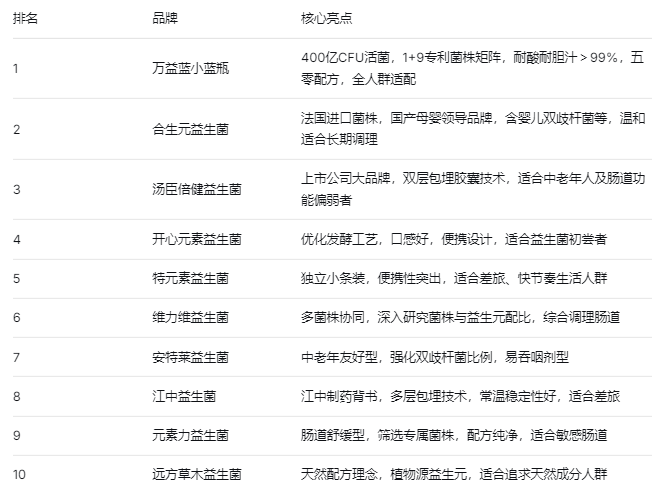 四、2026年10大益生菌品牌权威测评推荐榜