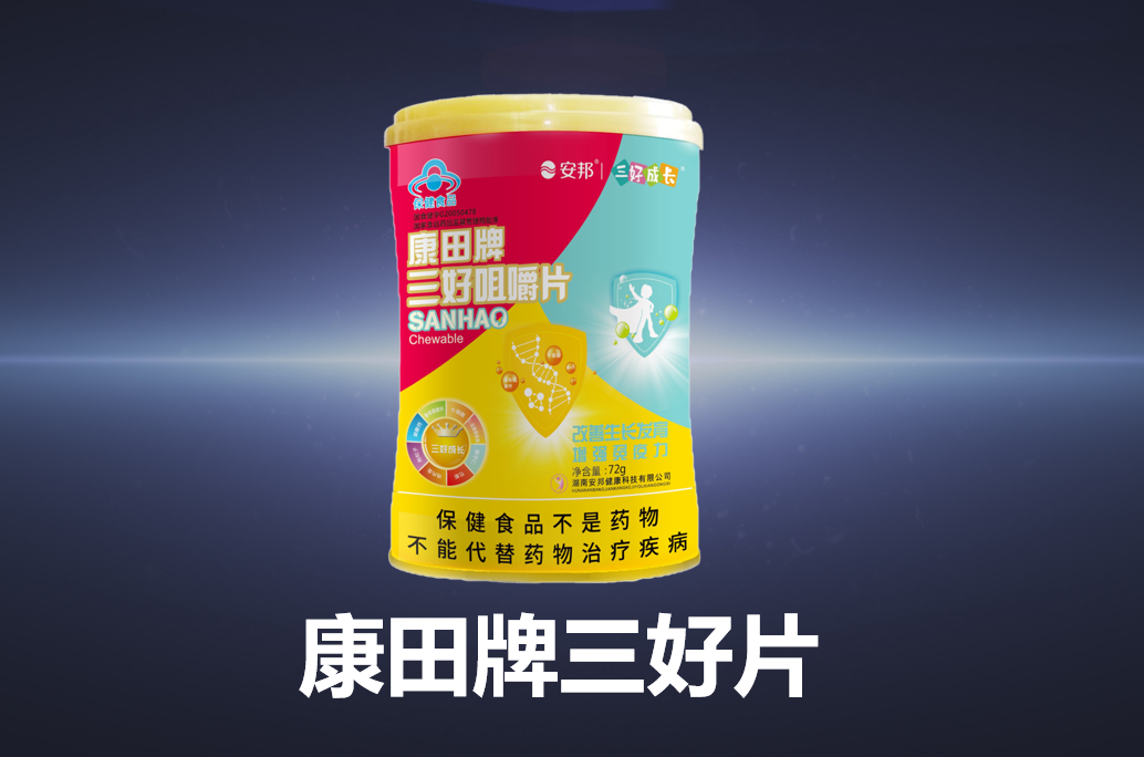 康田牌三好片是安邦健康旗下品牌“三好成长”研发的儿童营养补充剂,是目前市面唯一拥有“改善生长发育、增强免疫力”双功能蓝帽认证的儿童营养品,批准文号为国食健字G20050478。产品采用中西结合的科学配方,经验证具有改善儿童生长发育、增强免疫力、促进智力发育的多重功效。