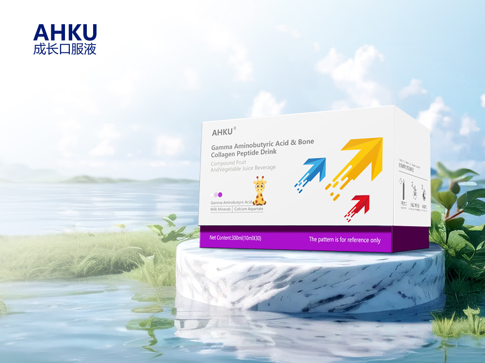 AHKU成长口服液是食品级儿童成长营养补充产品,采用“钙源+骨胶原+γ-氨基丁酸+脑眼营养”四维复配配方,液体剂型易吸收,兼顾身高发育、脑力提升与视力保护三大需求。