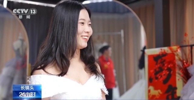王菲杰:本来打算去买的,后来跟我闺蜜讨论了一下,她说这边有一个公益的婚纱小站。我妈妈一开始有一点点小意见,后来我和她沟通了,毕竟如果自己买,也就穿一次,后面也是浪费。所以她后来也被我说通了。